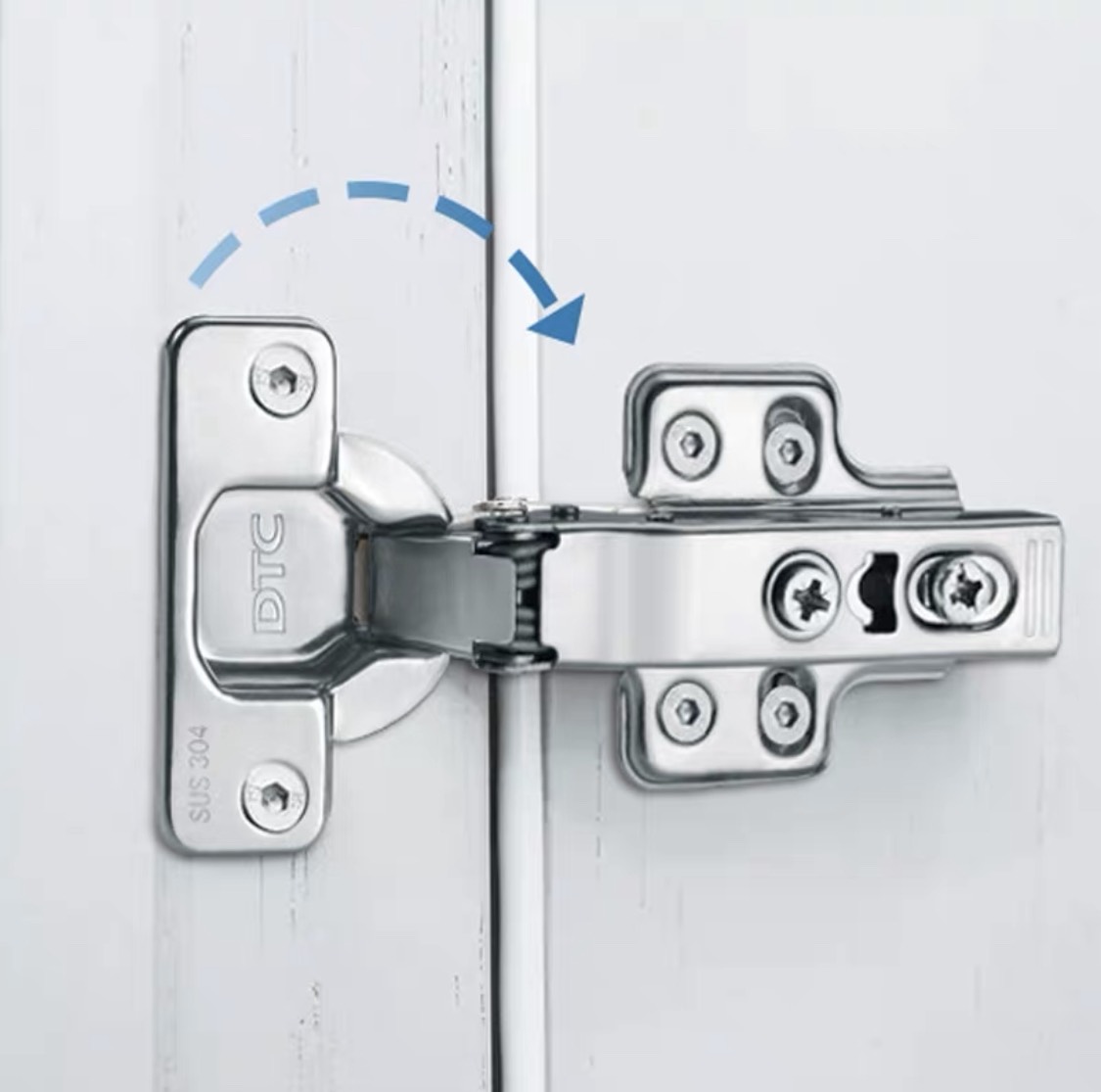 Tại các loại tủ bếp, tủ gỗ cao cấp chúng ta sẽ dễ dàng bắt gặp loại bản lề Inox giảm chấn DTC này và chúng thường được biết đến với tên gọi đầy đủ là bản lề inox 304 được tích hợp giảm chấn.