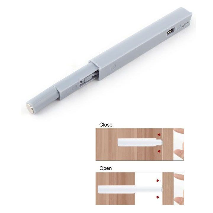 Nút nhấn mở cánh tủ lò xo thiết kế dành cho cửa không có tay nắm; có nam châm giữ cho cánh tủ luôn được đóng chặt; hoạt động theo cách thức khi nhấn vào cửa sẽ mở ra và nhấn thêm lần nữa cửa sẽ quạy lại vị trí đóng.