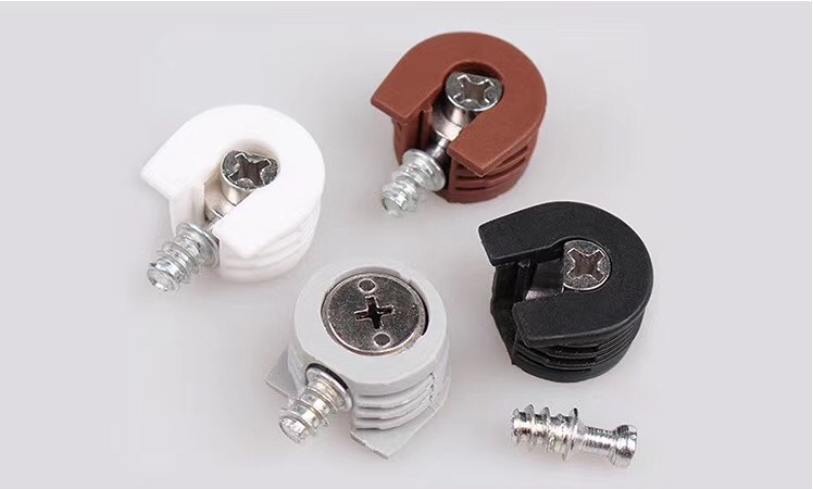 Ốc liên kết cam nhựa này bao gồm các bộ phận bằng nhựa, các bộ phận hợp kim kẽm và vít, có thể làm cho các tấm gỗ tủ đồ nội thất có khả năng chịu lực mạnh hơn, và các ốc vít có độ cứng cao, giúp tiết kiệm thời gian và công sức trong quá trình lắp đặt. Bánh xe lệch tâm hợp kim kẽm không dễ bị vỡ và khóa chắc chắn.