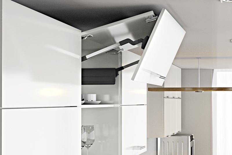 Ngoài ra, khi sử dụng tay nâng cánh tủ còn giúp người dùng việc đóng mở cửa tủ bếp trở thành một trải nghiệm thú vị. Khi sử dụng phục kiện tay nâng này có thể thay thế hoàn toàn cửa tay nắm lỗi thời và có nhiều hạn chế