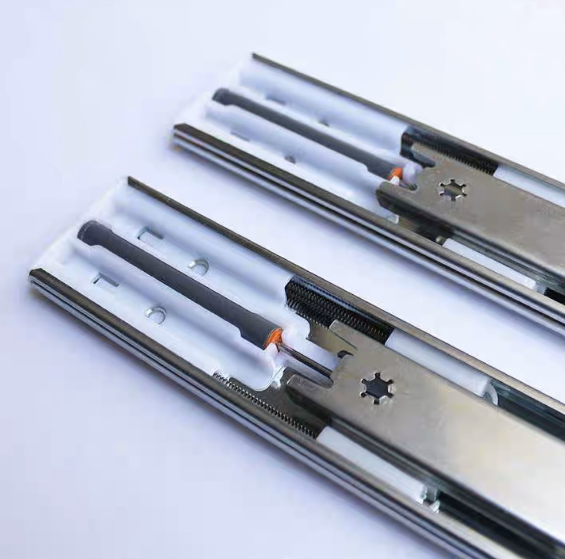 - Sang trọng hơn: Do cấu tạo của thanh ray trượt giảm chấn là từ thép mạ kẽm. Bề mặt bên ngoài có độ sáng bóng, không gì sét do sự ảnh hưởng của môi trường bên ngoài