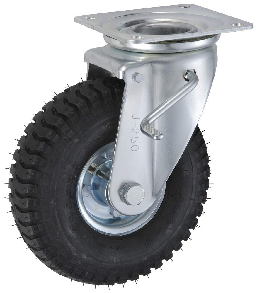 Bánh xe có khoá thì được cấu tạo bằng vỏ cao su chịu được tải trọng lớn, bền và không gây trầy xước cho nền nhà. Bánh xe có thể xoay êm nhờ lắp ổ bi (bạc đạn) bên trong vỏ. Càng được làm từ thép chấn uốn tăng độ cứng. Loại bánh xe này được xoay tự do nhờ ổ bi hai dãy êm.