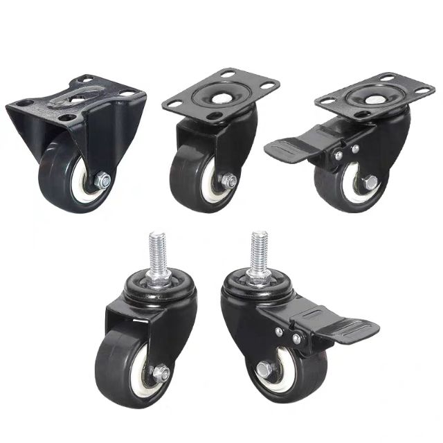 Bánh xe địa cầu có đường kính 50mm bằng nhựa dẻo đúc đặc (hoặc bằng cao su), cây ty thép M8 đóng lên các thành phần chấu chân của ghế hoặc tủ. Khung thép đỡ dày 1.1mm (hoặc có thay đổi so với thực tế). Chuyển động khá êm ái và cực kỳ chắc chắn.